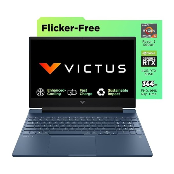 HP Victus, AMD Ryzen 5 5600H, NVIDIA RTX 3050, 16GB DDR4, 512GB SSD (Win11, Office21, Blue, 2.37kg) 144Hz, 9MS, IPS, 15.6-inch(39.6cm) Gaming Laptop, Backlit kb, Enhanced Cooling, fb0106AX/Fb0112AX